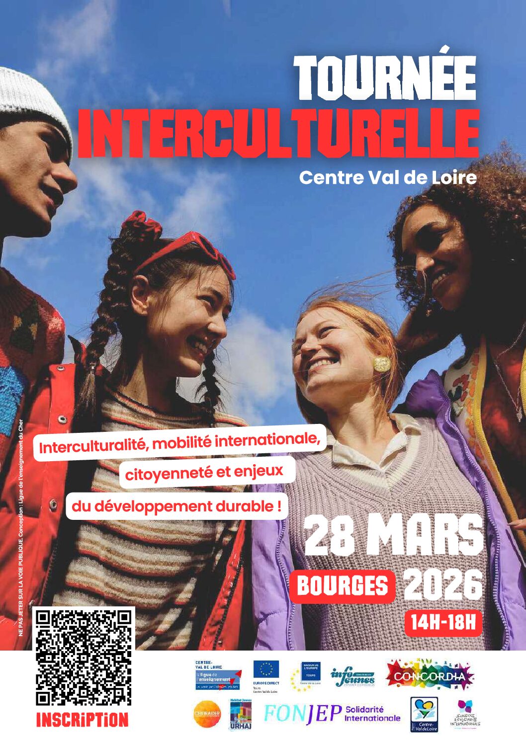 Série de trois événements autour de l’interculturalité, de la mobilité internationale et de la citoyenneté européenne, organisés en mars 2026 dans la région Centre-Val de Loire (Tours, Orléans et Bourges).
