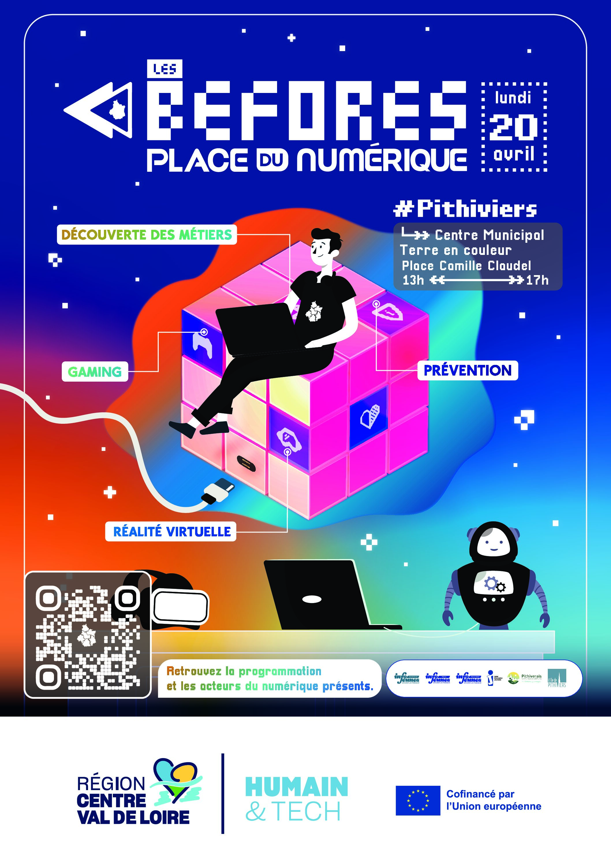 En prélude à l’évènement Place du numérique qui se tiendra à Orléans le mardi 9 juin, une date BEFORE est proposée le lundi 20 avril, de 13h à 17h au Centre social municipal Terre en couleurs, en partenariat avec la structure Info Jeunes de Pithiviers.