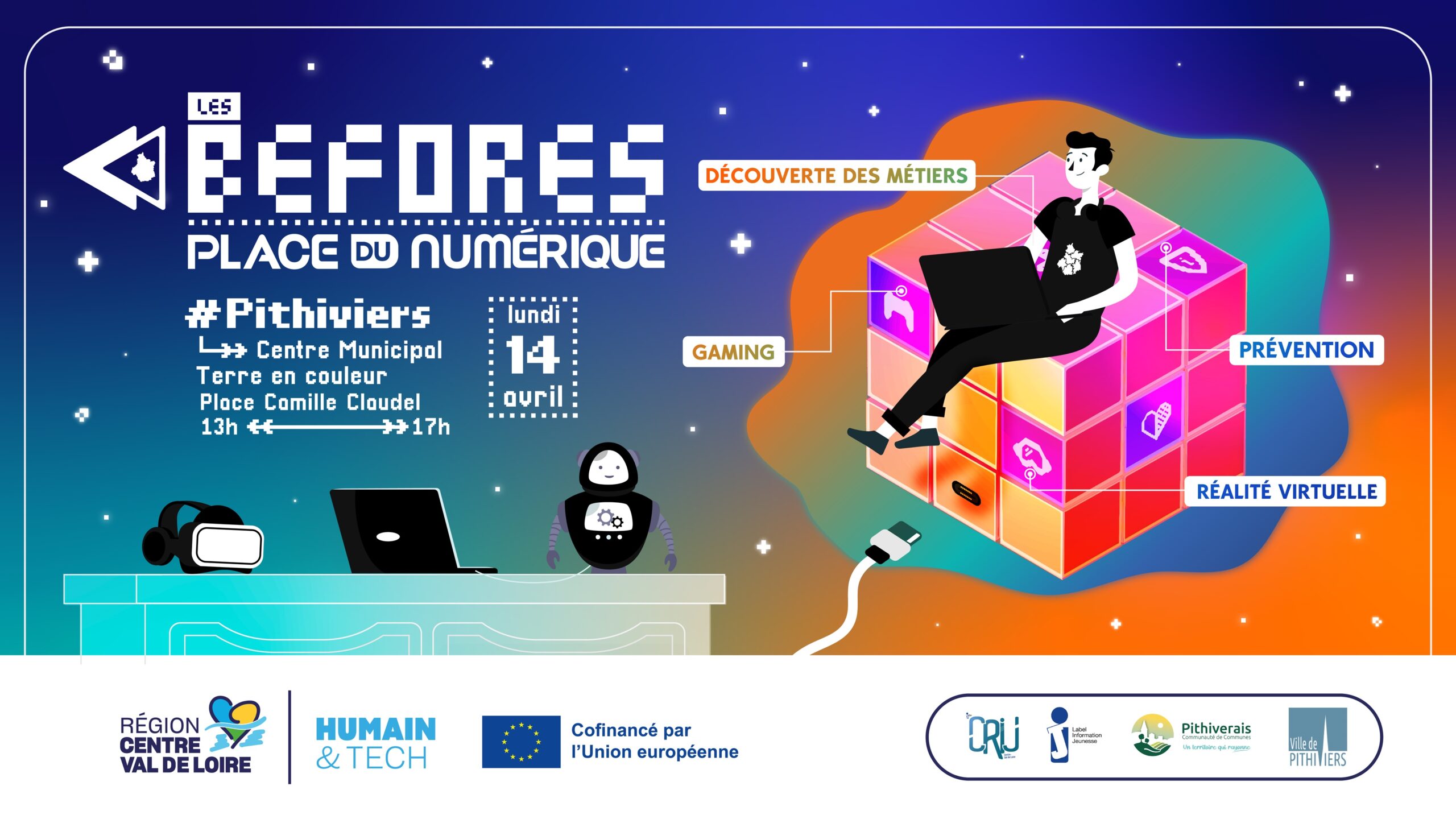 En prélude à l’évènement Place du numérique qui se tiendra à Orléans le jeudi 5 juin, une date BEFORE est proposée le lundi 14 avril, de 13h à 17h au Centre Social Municipal Terre en couleurs, en partenariat avec le Point Information Jeunesse de Pithiviers.