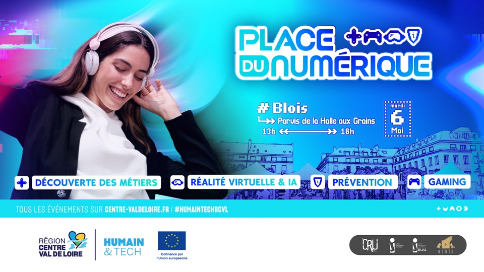 Place du numérique est organisé par le Bureau Information Jeunesse de Loir-et-Cher, le CRIJ Centre-Val de Loire, et la Région Centre-Val de Loire, dans le cadre de Humain & Tech. Cette action est cofinancée par la Région Centre-Val de Loire et l’Union européenne.
