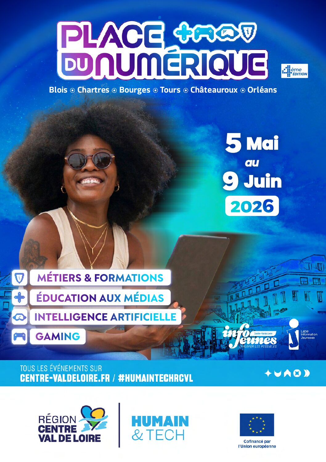 Dans le cadre des événements Humain & Tech 2026 pilotés par la Région Centre-Val de Loire, Info Jeunes Centre-Val de Loire et les structures Info Jeunes organisent la 4e édition de la tournée régionale “Place du numérique”.
