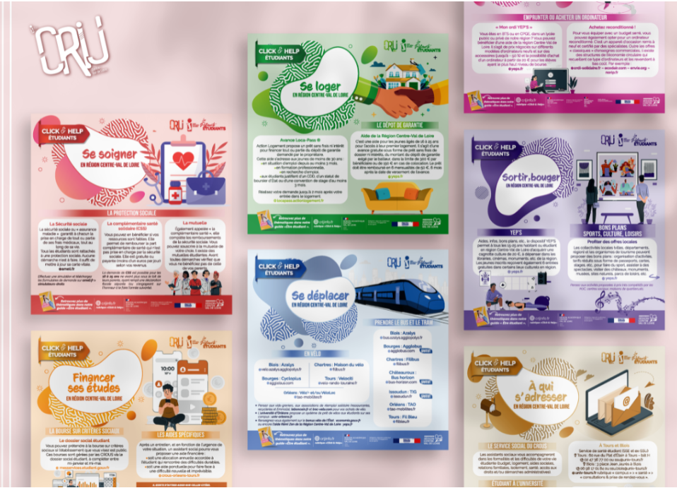 Modalité d'utilisation : La reproduction de ce guide est autorisée sous réserve de faire figurer la mention suivante : “Extrait des Cartes “Click & Help étudiants”, édition 2025 Info Jeunes Centre-Val de Loire”. Dépôt légal © : Info Jeunes Centre-Val de Loire – 2025